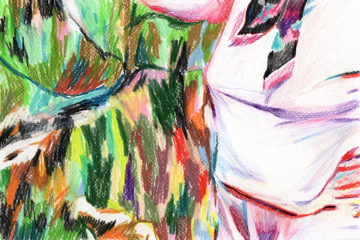 Dessin puzzle de 90 X 108 cm aux crayons de couleurs sur papier d’après une photo de Françoise d’Eaubonne